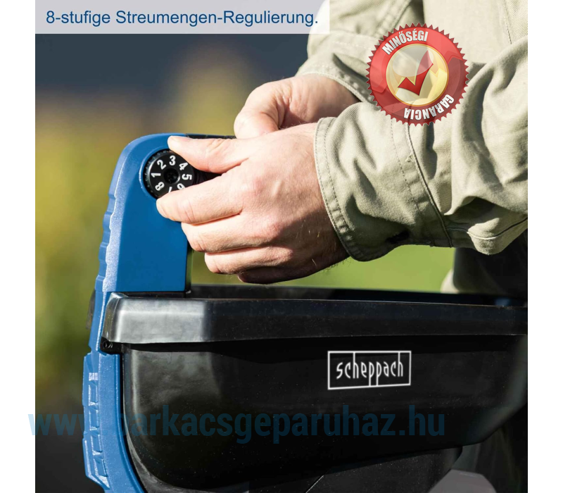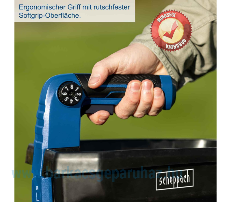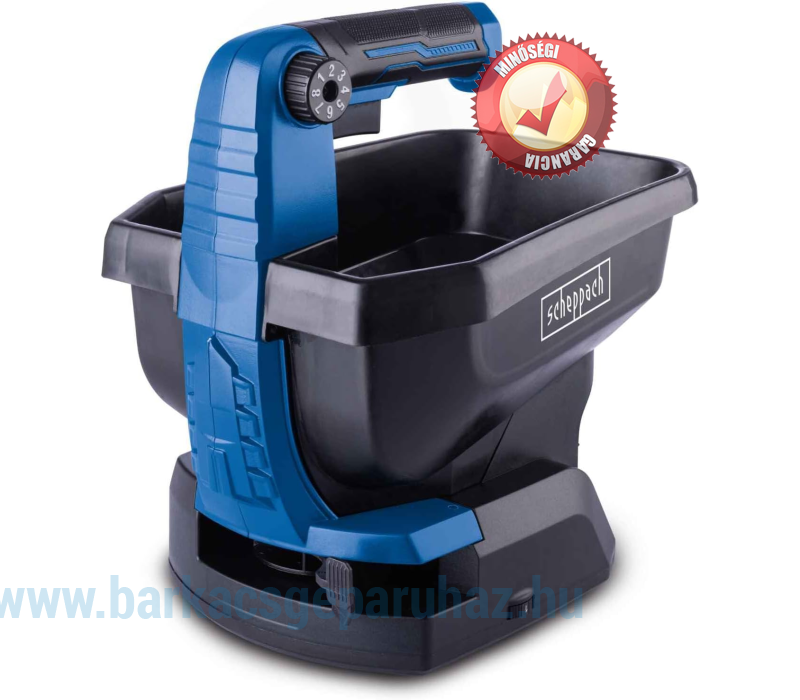 Scheppach C-GSP800-X akkus kézi só szórófej 20 V-os univerzális szórófej | Szórási szélesség 5 m | Űrtartalom 3,5 L | 20 V IXES sorozat | Felületi kapacitás 800 m2 | 8 szórási mennyiség | Akkumulátor töltővel!