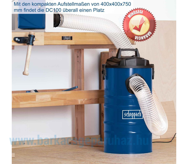A Scheppach DC 100 minden műhelyben hasznos. Megvédi gépeit, berendezéseit és önt a kellemetlen portól. Így növelve azok élettartamát. Azonban nem mindenkinek áll rendelkezésére a műhelyében annyi hely, vagy nincs lehetősége, hogy el tudjon ott helyezni egy nagyméretű elszívót, erre kiválóan alkalmas ez a kis méretű elszívó.