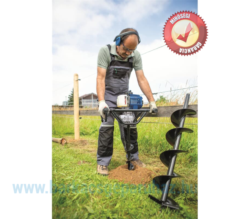 A kétütemű talajfúró talajba, homokba és egyéb, talajba fúrt lyukak készítéséhez nyújt ideális segítséget.