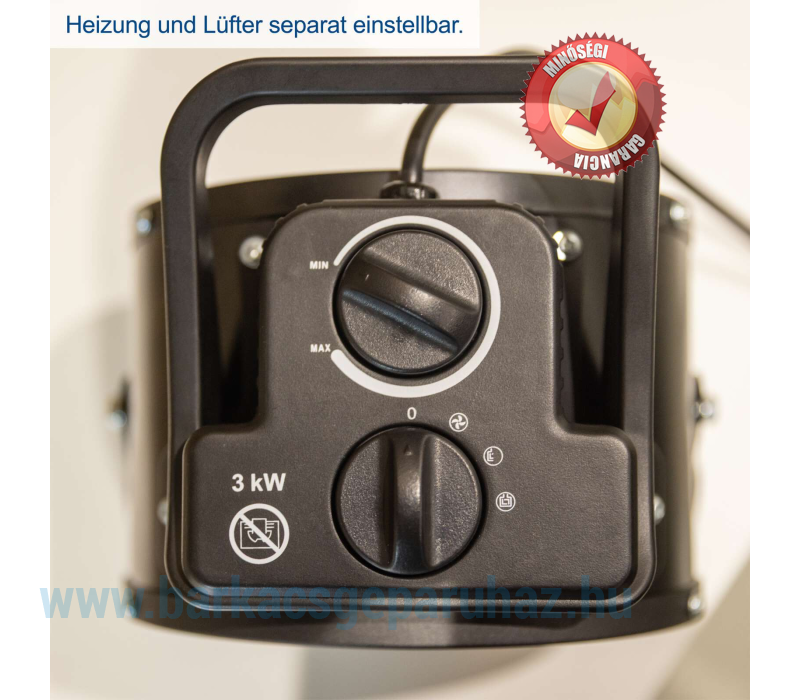 - 3000 W fűtőteljesítmény és 320 m³/h légmennyiség