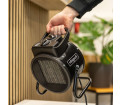 A Scheppach EH3000 elektromos ventilátoros fűtőberendezés 3000 W fűtőteljesítményével és 320 m³/h légáramlásával gyors és egyenletes fűtést biztosít akár 60 m³-es zárt terekben is. A kiváló minőségű kerámia fűtőelem energiahatékony és hosszú élettartamú hőteljesítményt garantál. A folyamatosan változtatható hőmérséklet-szabályozás lehetővé teszi a kívánt helyiséghőmérséklet egyedi beállítását 5 °C és 85 °C között. Három hőmérsékleti beállítás és a 0–25° között állítható levegőkimeneti szög lehetővé teszi a célzott hőelosztást. Az integrált hordozófogantyú megkönnyíti a szállítást, míg a túlmelegedés elleni védelem maximális biztonságot nyújt működés közben.