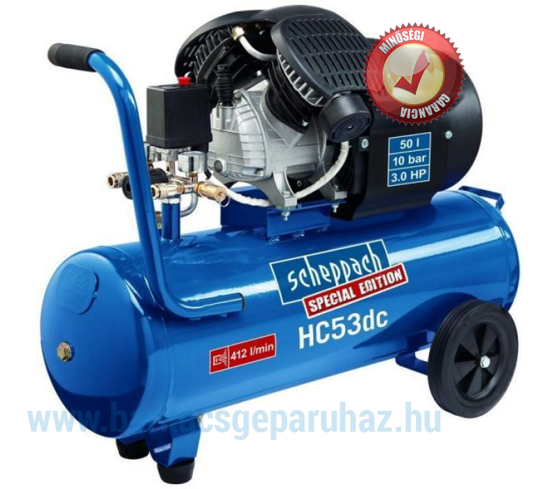 A Scheppach HC 53 DC olajkénésű kéthengeres kompresszor alkalmas műhelyekbe, szervizekbe, levegős gépek meghajtására. A 10 bar üzemi nyomás és 50 l térfogat biztosítja a hósszú, folyamatos munkavégzést. Kompakt gurulós kivitelének köszönhetően könnyen mozgatható.