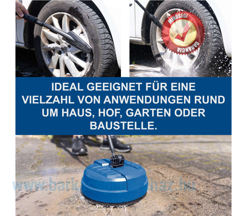 - Tartalmaz 5 m-es nagynyomású tömlőt, turbó fúvókát, változtatható fúvókát, Kärcher adaptert, mosókefét, terasztisztítót, fúvókatisztító tűt és mosószertartályt