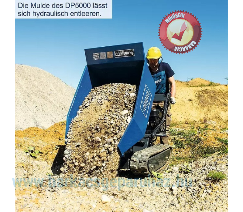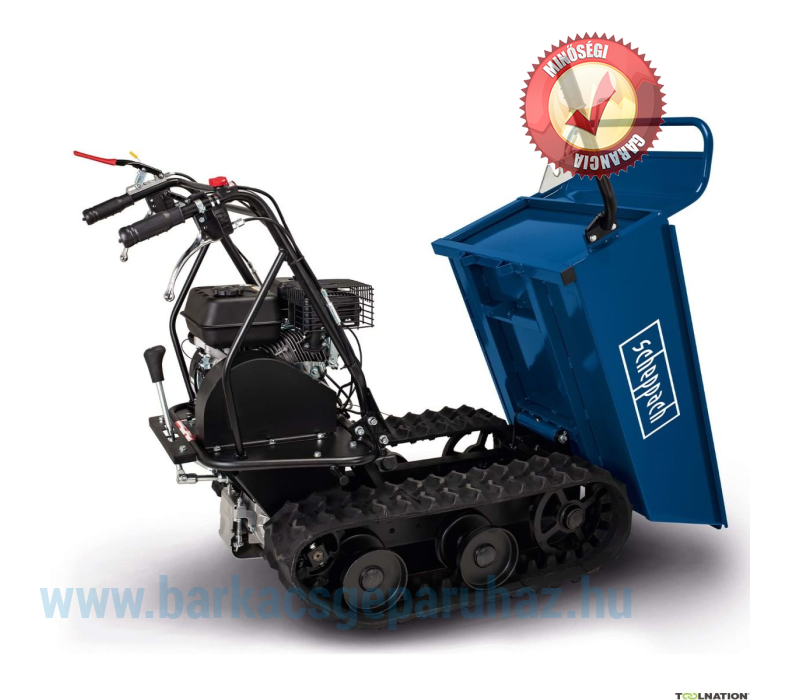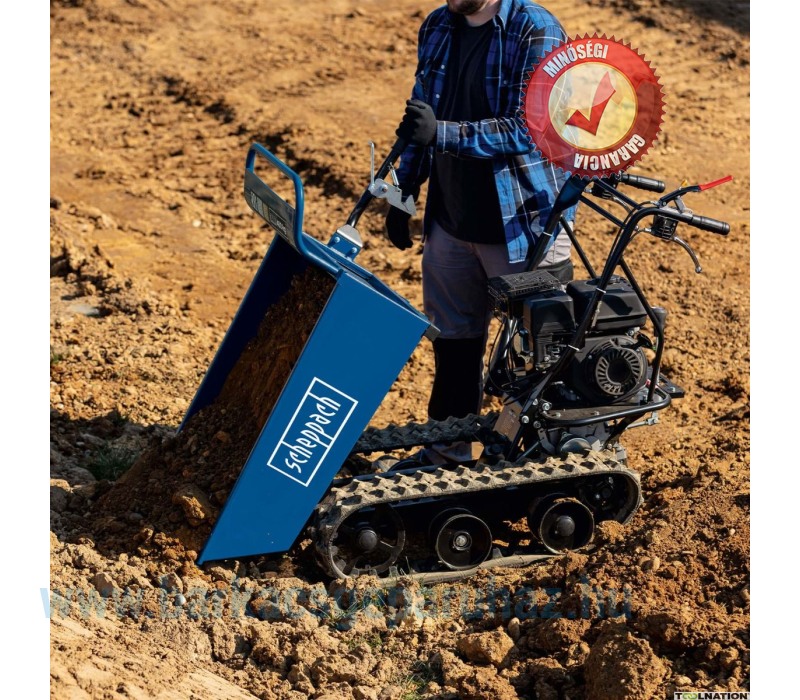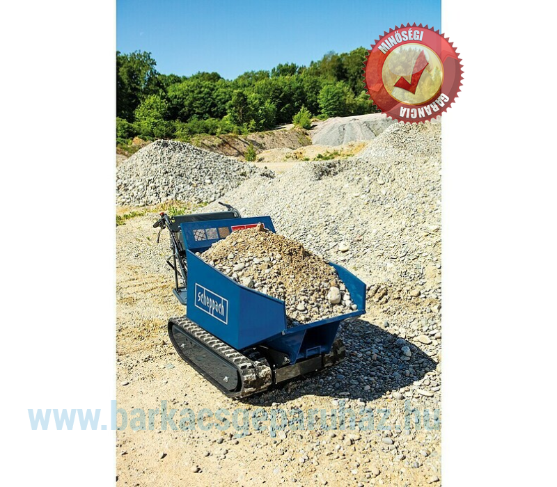 Ez a benzinüzemű professzionális lánctalpas dömper ideális eszköz építőiparhoz, erdészethez és mezőgazdasághoz, valamint nagy telkeken való munkavégzéshez. Könnyedén szállít nagy mennyiségű földet, kavicsot, törmeléket, követ és sok mást. Egyszerű kezelhetősége hihetetlenül könnyűvé teszi a manőverezést. A haladási irány kényelmesen állítható a fogantyú segítségével. Három előre- és egy hátrameneti fokozattal a dömper ideálisan az Ön igényeihez igazítható, akár előre, akár hátrafelé halad. A felszerelt lánctalp alkalmas sáros, nedves és csúszós felületekre, így mindig kiváló tapadást biztosít, különösen építkezéseken vagy erdőben.