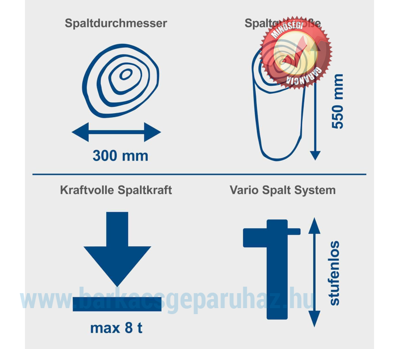 A biztonsági elemek nagyon jól átgondoltak (munkaasztal szélesítés, rönktartó), így tökéletesen védik a felhasználó biztonságát. Robusztus szerkezete és Európa legnagyobb rönkhasító gyártójának szervizháttere hosszú élettartamot garantál.