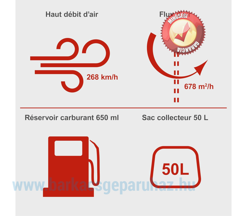A nagy méretű 50 literes gyűjtőzsák biztosítja a hatékony munkavégzést.