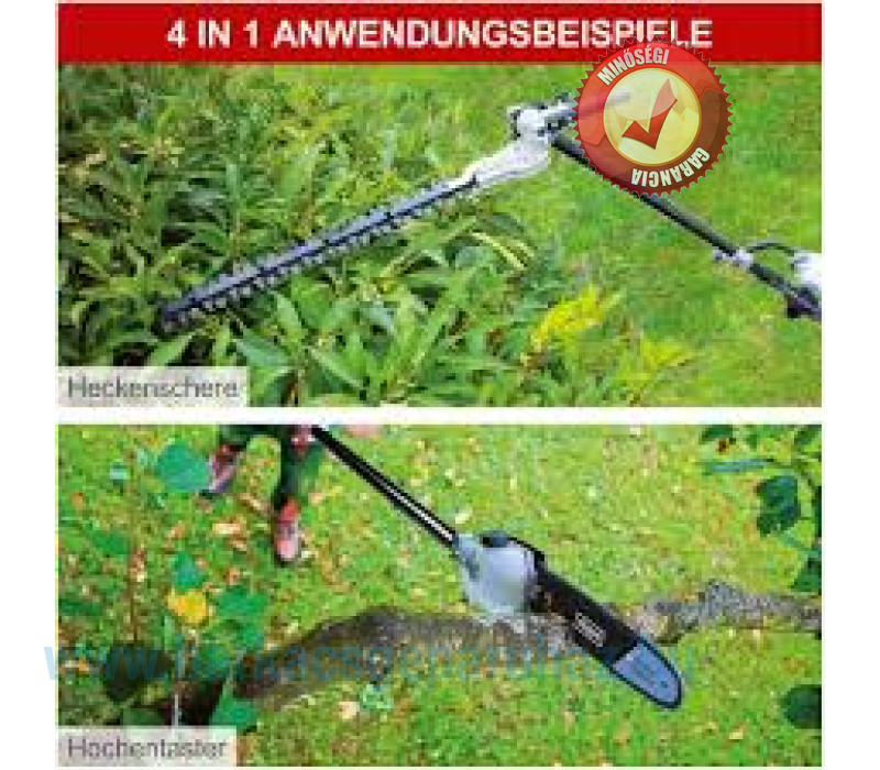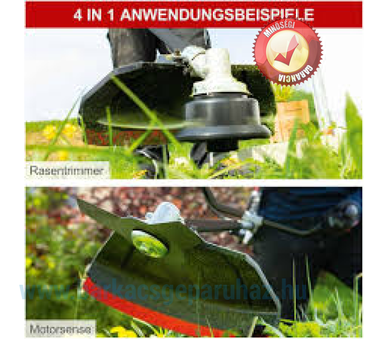 - Fűkasza: kétsoros orsó; 450 mm vágási szélesség
