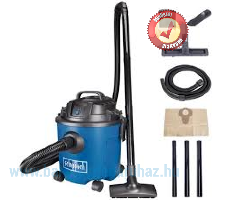A Scheppach NTS 16 egy könnyű, kompakt, ugyanakkor jelentős, 20 kPa-os szívóerővel bíró, nagy teljesítményű száraz / nedves porszívó. A gyűjtőtartály kapacitása 16 liter.