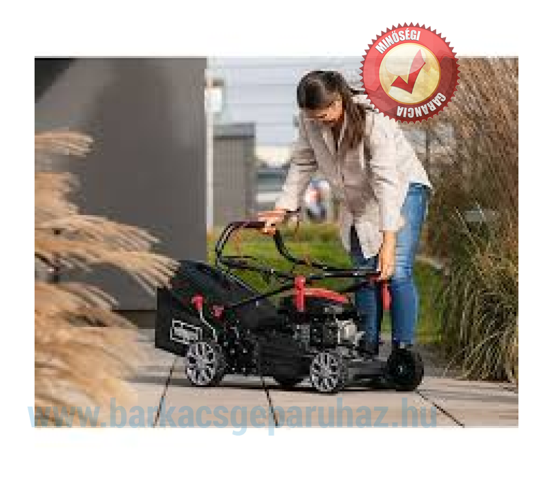 A kompakt, 6 az 1-ben funkcióval felszerelt Scheppach PML46-161S benzines fűnyíró nagyon rövid idő alatt lenyírja közepes méretű füvet és pázsitot erőteljes, 150 cm3-es és 3,5 LE teljesítményű, 46 cm-es vágásszélességű, négyütemű benzinmotorjával. 1000 m2. Professzionális sebességváltója extra nagy nyomatékot , nagy teljesítményt és hosszú élettartamot biztosít . A vágási magasság 8-szor egyszerűen állítható (25-75 mm). A robusztus, 55 l-es szövetgyűjtő dobozban elegendő hely áll rendelkezésre a vágások számára . Ezzel megkíméli Önt a fűnyírás utáni gereblyézéstől. Az acélház másik fogantyújával a szállítás sokkal könnyebbé válik. A dupla összecsukható fogantyú helytakarékos tárolást tesz lehetővé. A PML46-161S integrált oldalsó és hátsó ürítéssel, valamint mulcsozó funkcióval rendelkezik a professzionális eredmények érdekében.