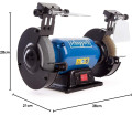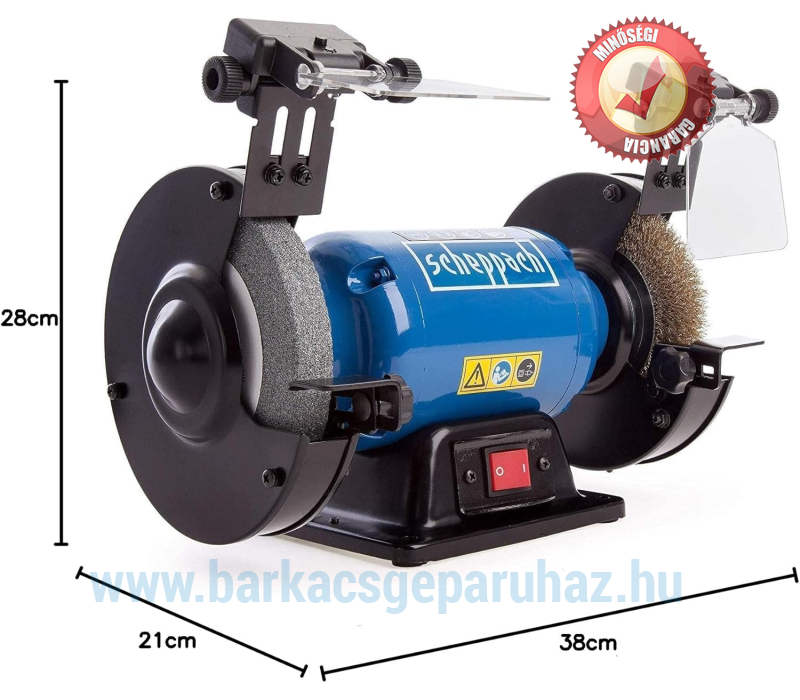 A Scheppach SM150LB dupla csiszoló ideális mindenféle csiszolási, élezési és polírozási feladathoz. A csiszoló egy K36 szemcseméretű csiszolókoronggal és egy sokoldalú kefés kerékkel rendelkezik. Ez utóbbi ideális felületek tisztítására vagy forrasztáshoz és hegesztéshez való előkészítésére, valamint egyéb olyan műhelyi feladatokra, amelyekhez a dupla csiszoló elengedhetetlen. Öntöttvas talpával és minden csiszolókorong feletti LED-es munkalámpákkal a dupla csiszoló széleskörű alkalmazási lehetőségeket kínál.