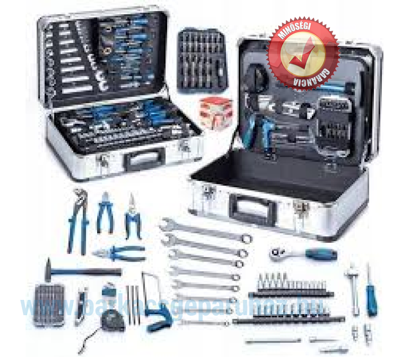 8 oldalkulcs, 6 csavarhúzó (lapos és csillag), 2 pontos óramű csavarhúzó, fázisceruza, 72 fogas racsnis kulcs, 2 bit adapter, dió adapter, 9 db 10 mm-es dió (3/8"), 8 db 6,3 mm-es dió (1/4"), 2 dugókulcs-csukló, 3 kulcshosszabbító, állítható hosszabbító, 5 bitfej, bitcsavarozó, 3 féle fogó.