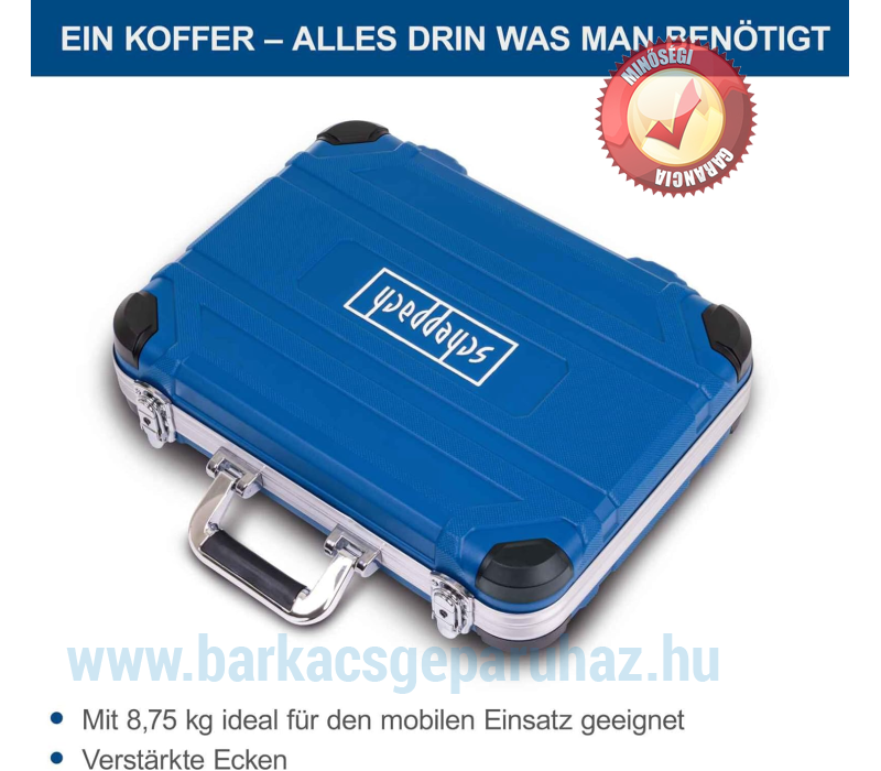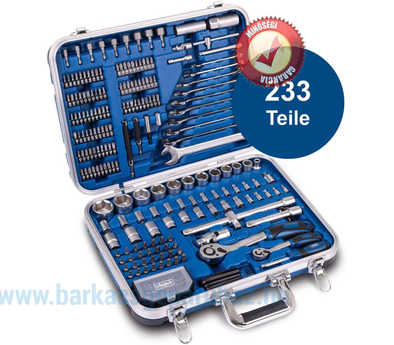 A 233 praktikus szerszámot tartalmazó Scheppach TB233 szerszámkoffer ideális ház körüli használatra, építkezéseken, műhelyekben vagy kempingezéskor. A szerszámok kiváló minőségű, tartós króm-vanádium acélból készültek, a gumírozott, puha markolatú fogantyúk pedig biztonságos fogást biztosítanak munka közben. A jól rendszerezett szerszámkészlet egy robusztus és zárható, megerősített sarkú műanyag tokban érkezik, így kiválóan alkalmas nehéz körülményekre és mobil használatra. A készlet tartalmaz különféle dugókulcsokat, biteket, imbuszkulcskészletet és még sok mást.