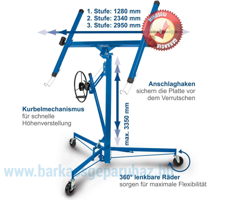 Összeszerelési segédeszköz a magasban végzett munkához belsőépítészetben és gipszkartonban - Ideális terhek emeléséhez, mint például gipszkarton, forgácslap, fa, fém panelek