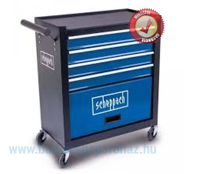 A Scheppach TW1300 műhelykocsiban a szerszámok és gépek áttekinthetően és helytakarékosan tárolhatók, így praktikus segítőtárs lehet minden műhelyben. A négy fiók mindegyike csúszásgátló szőnyeggel van ellátva, és a masszív golyóscsapágyas vezetősíneknek köszönhetően könnyen nyitható és zárható. A nagy tárolóterület és a praktikus szerszámrekesz további szerszámok és gépek tárolására is helyet biztosít. A műhelykocsi maximum 120 kg-ot bír el.