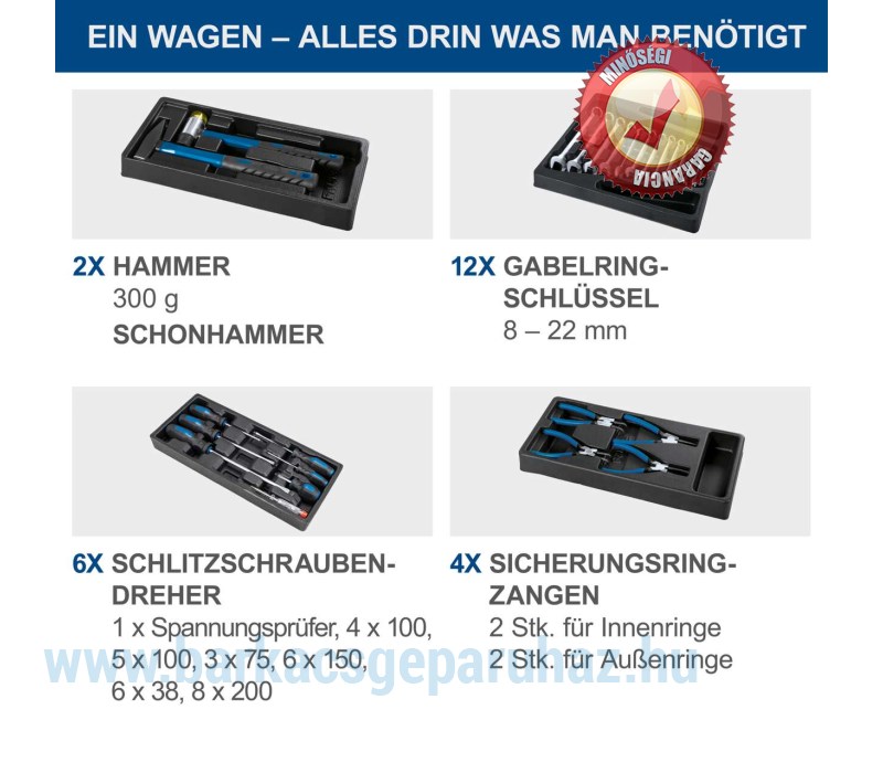 - 12 db villáskulcs (8 / 9 / 10 / 12 / 13 / 14 / 15 / 16 / 17 / 18 / 20 / 22)