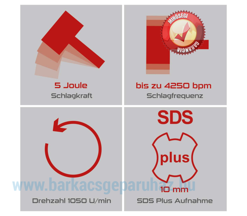 - Könnyű szerszámcsere az SDS-Plus befogórendszernek és a 10 mm-es tengelyátmérőnek köszönhetően