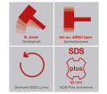 Az SDS-Plus befogórendszer 10 mm-es szárátmérővel gyors és szerszámmentes fúró- és vésőcserét biztosít. Az SDS-Plus tokmány különösen nagy erőátvitelt tesz lehetővé.